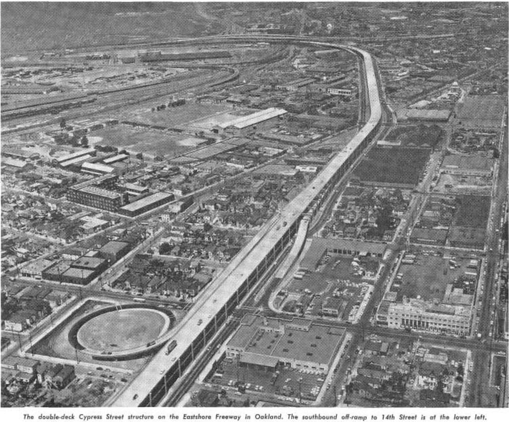But the 1950s also brought something new—freeways. The Cypress Freeway was built in 1957 just a few blocks east of here. It cut this area off from the rest of Oakland, and made this semi-industrial area less desirable for housing. But freeways also opened up more distant locations like Fremont for manufacturing, motivating some industries to move.
