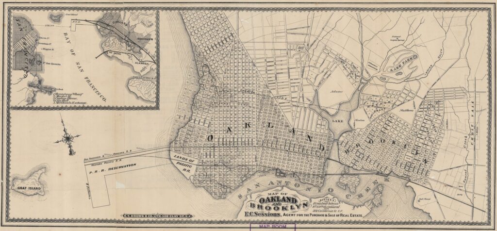 When Oakland was founded in 1852, this area was marshy ground, and West Oakland in general was sparsely populated until the first transcontinental railroad was completed in 1869. But by the end of the 1800s, West Oakland was a thriving part of Oakland. Local business owners secured the land for West Oakland Park and the city talked about filling in the marsh, but still not much happened. In March 1906, the West Oakland Improvement Club was set to improve the park, but in April the 1906 earthquake devastated San Francisco. The city council considered offering the area to San Francisco manufacturers to temporarily set up shop, but the local business owners said no, the land is for a park.